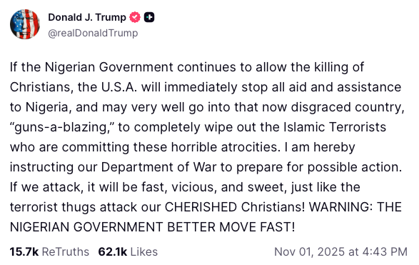 Thankfully, President Trump has brought attention to the massacre of Christians and has threatened US action if Christians aren’t protected.