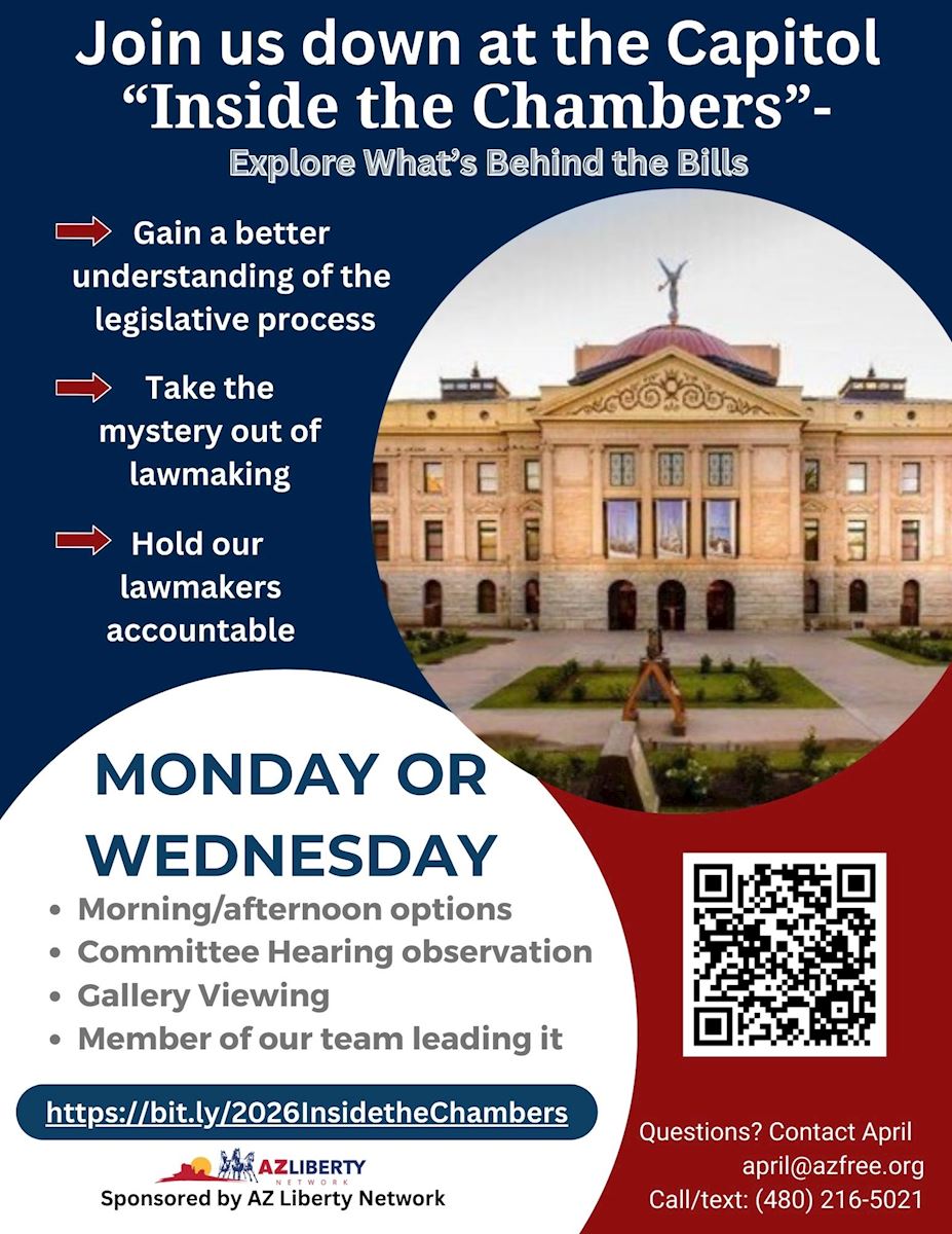 Let's show up to the Capitol! Our representatives tell us that conservative voices are underrepresented down there. Thus, we NEED to make strides to show up more, hold our representatives accountable, and remind them that they represent the citizens of Arizona!